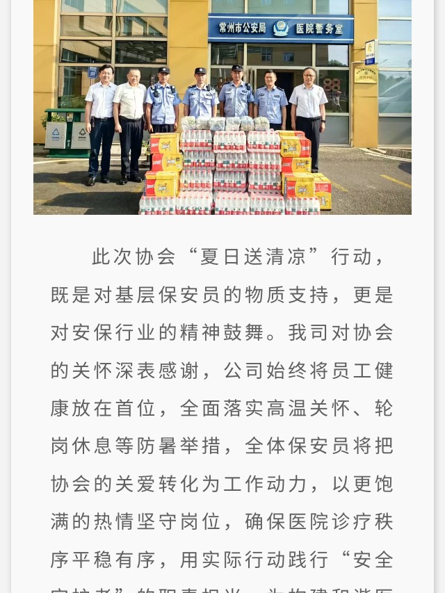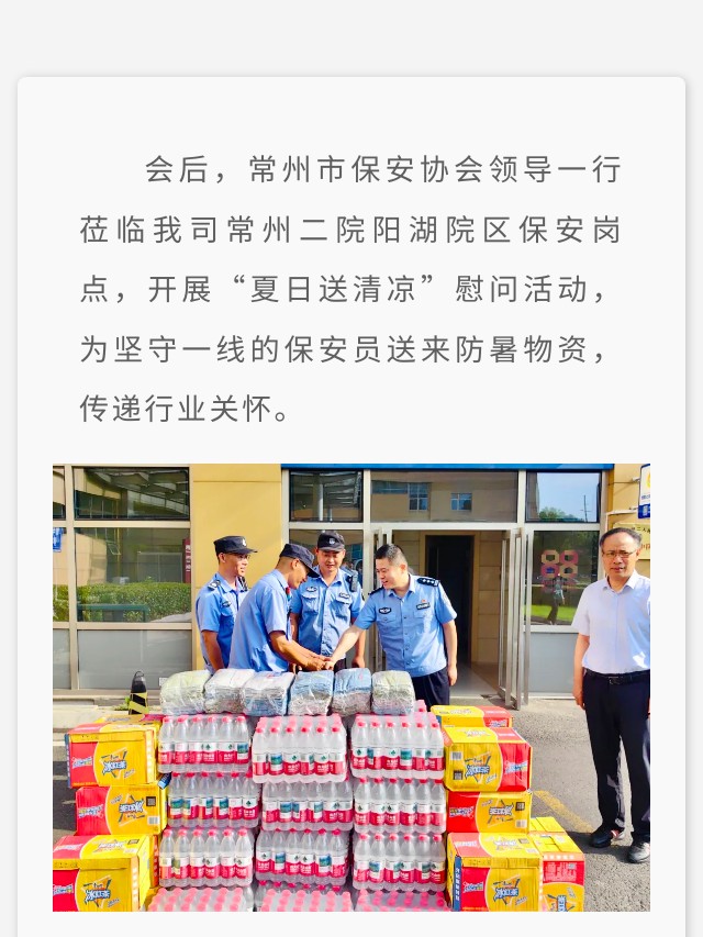 党建引领送清凉 情系一线保安员——常州市保安协会慰问我司一线安保力量