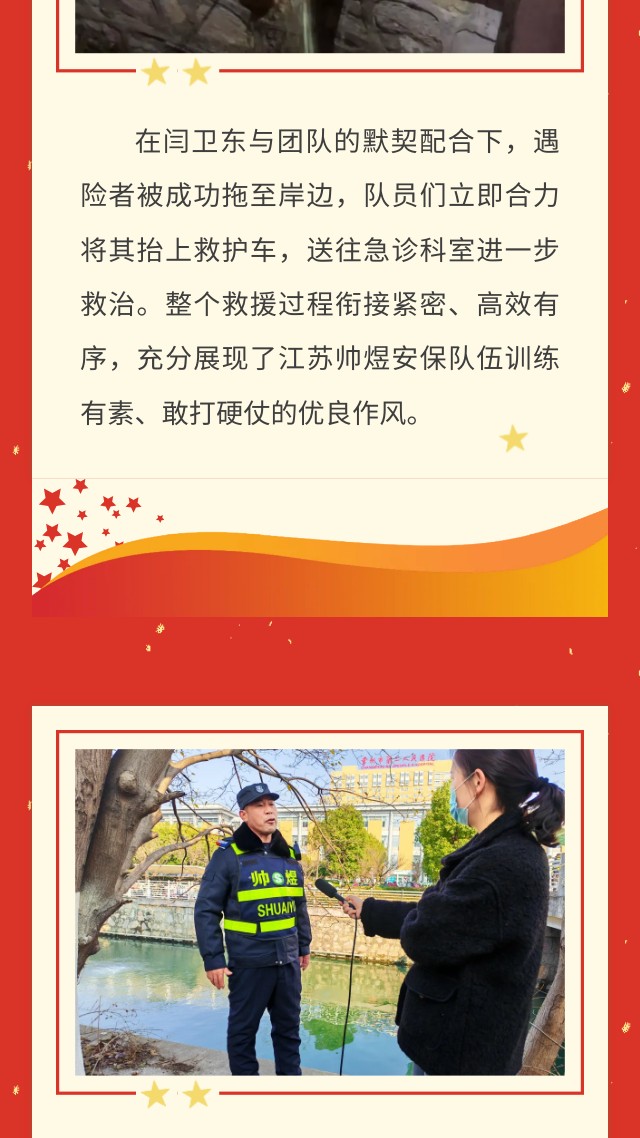 危急时刻显担当,纵身救人彰大义——江苏帅煜保安闫卫东与团队齐心勇救落水者