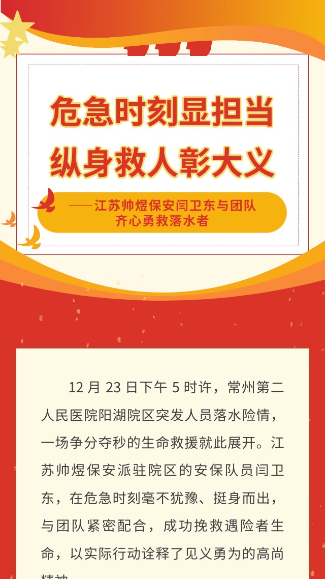 危急时刻显担当,纵身救人彰大义——江苏帅煜保安闫卫东与团队齐心勇救落水者